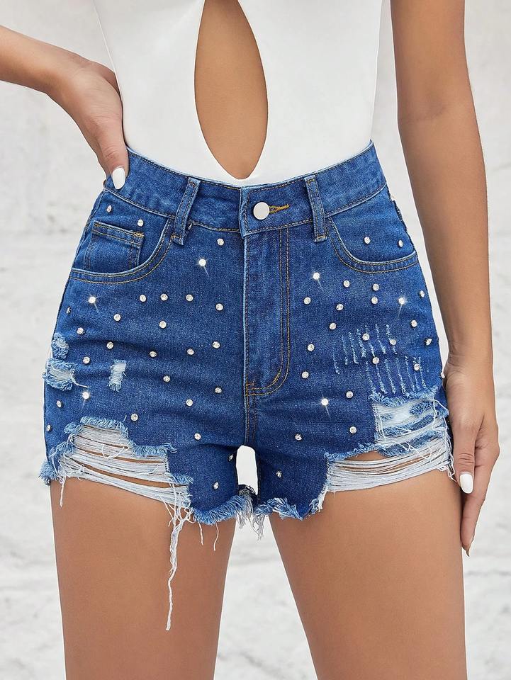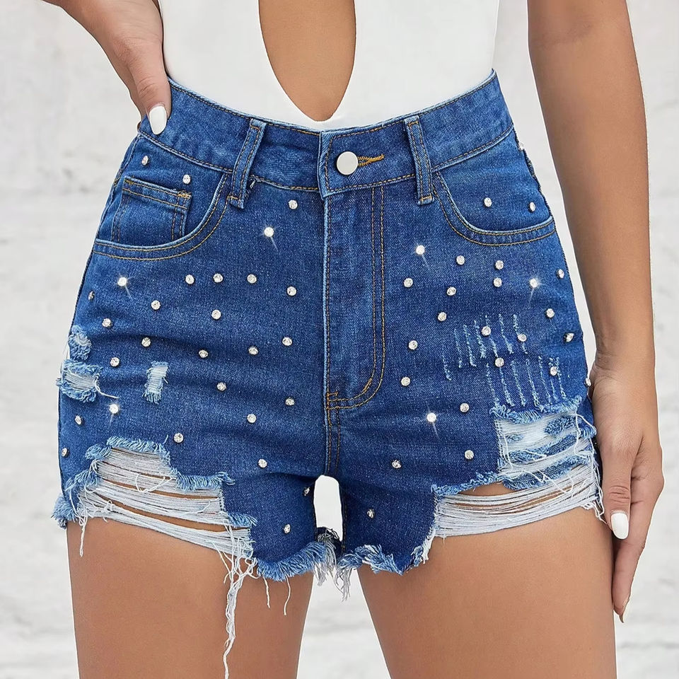 New Customize Design Denim Shorts Summer Stone Printed Jeans Shorts for Women Stylish Breathable Women's Shorts