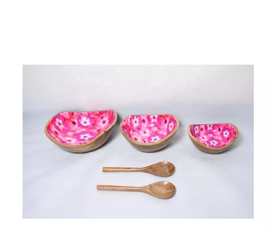 New Customized Design Enameled Print Wooden Salad Bowl Antique Design Kitchen Hotel Home Restaurant Use At Competitive Price