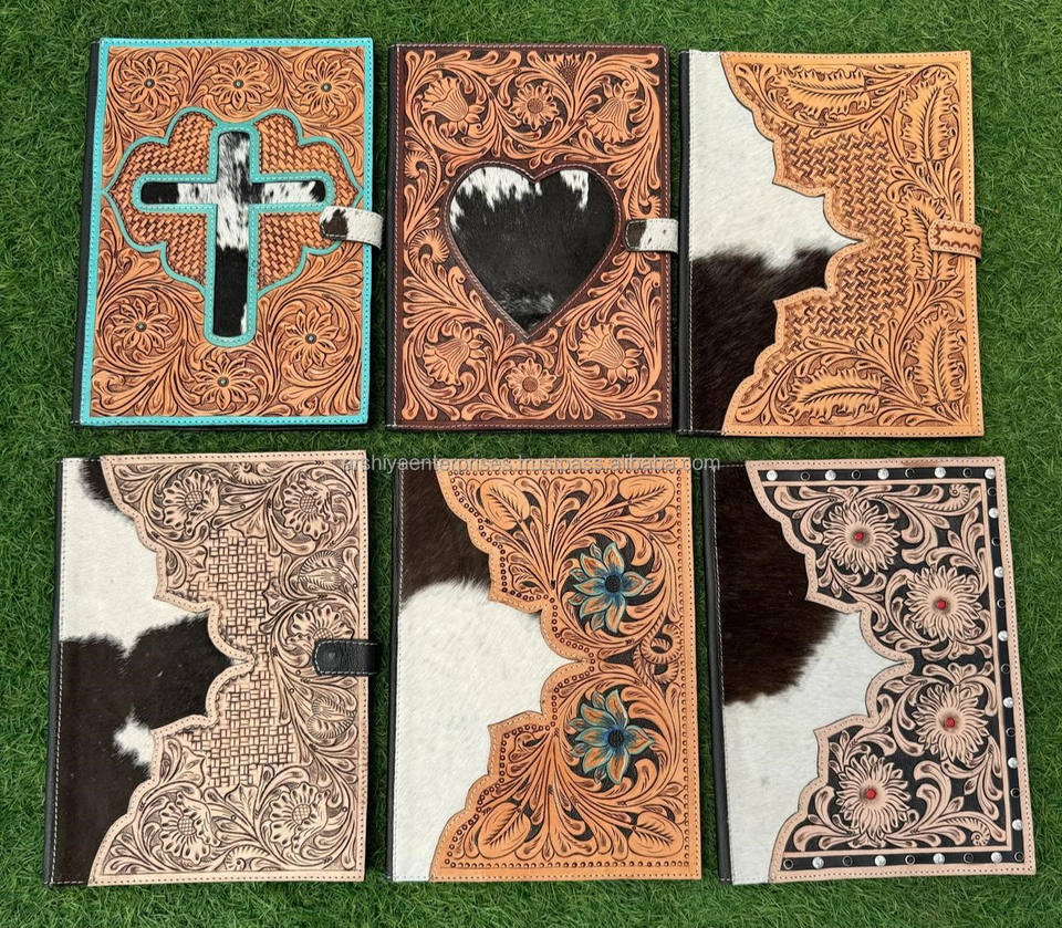 New Customized Design Hand Tooled Leather Portfolio Folder Padfolio Branded Cowhide Business Padfolio Folder Notebook Organizer
