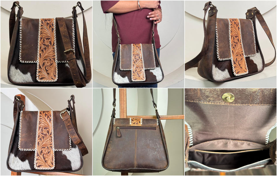 Hand Tooled Cowhide Leather Women's Large Purses Handbags
