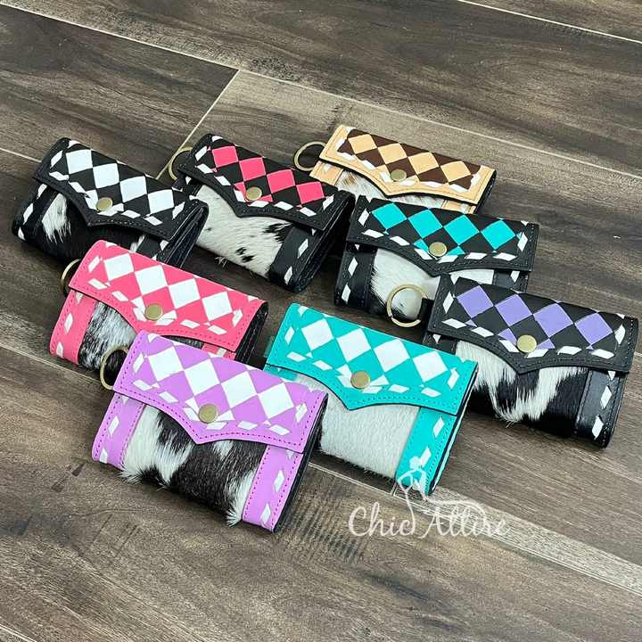 Product name:Hand Tooled Checkered Pattern Mini Coin Purse & Card Holder