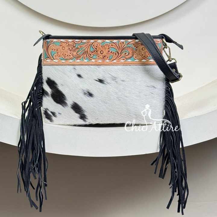 Fashionable Hand Tooled Fringe Shoulder Bag