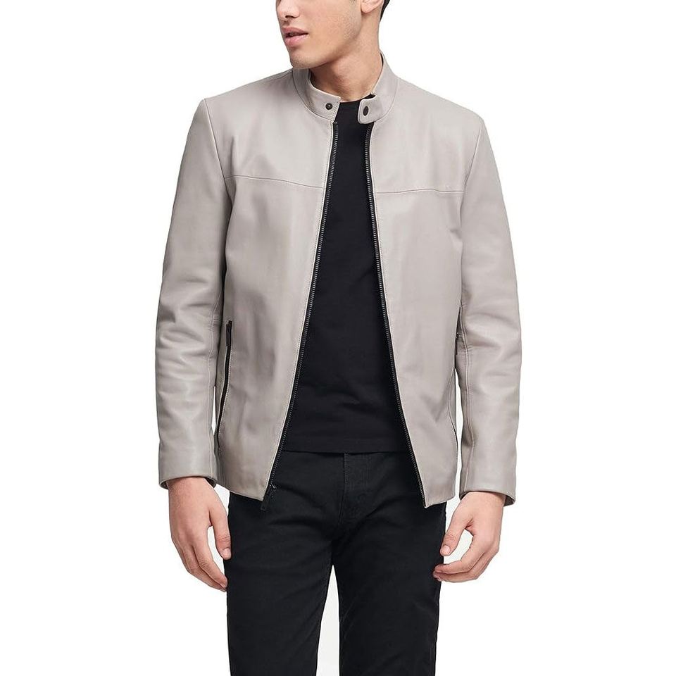 New Customized Genuine Leather Winter Jacket for Men Stand Collar Front Logo Quick Dry High Quality Stylish Motorcycle Jacket
