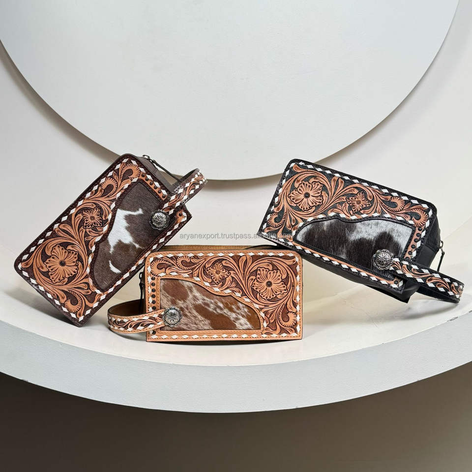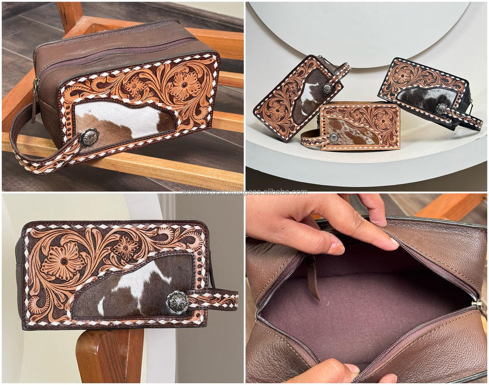 New Customized Hand Tooled Leather Travel Toiletry Bag Large Capacity Cosmetic Bag Cowhide Portable Storage Makeup Bag for Women