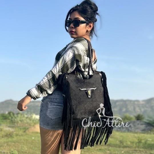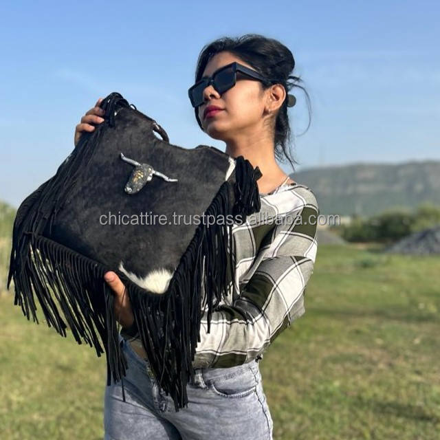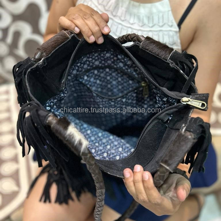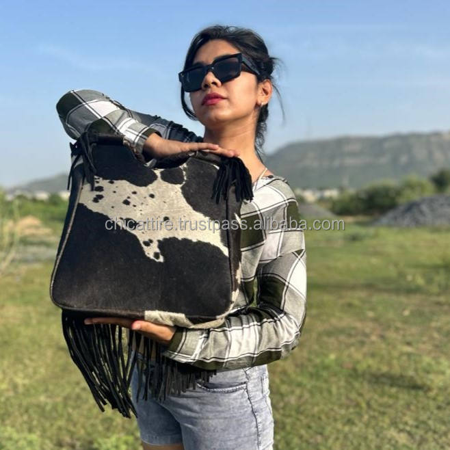Product name:Hair On Metallic Genuine Leather Fringe Tote Handbag