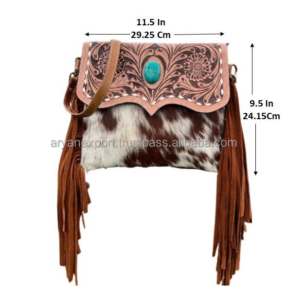 Product name:Hand Tooled Cowhide Leather Fringe Crossbody Bag