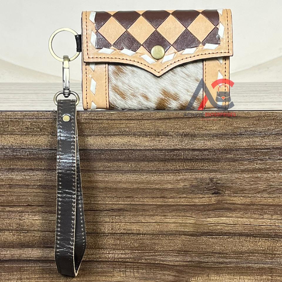 Product name:Hand Tooled Checkered Pattern Mini Coin Purse & Card Holder