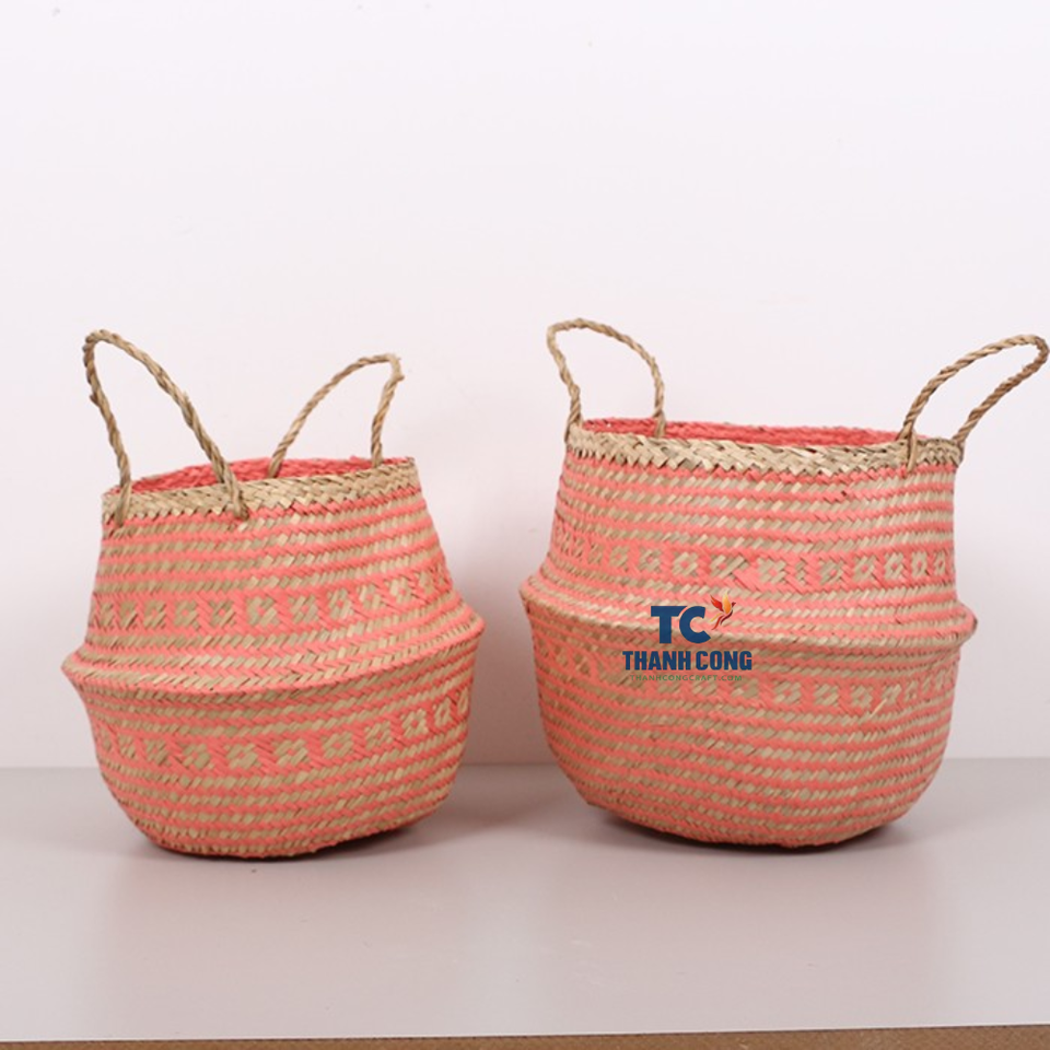 New Cute Natural Seagrass Handmade Foldable Storage Basket with Handles Made in Vietnam for Home Decorative and Gifts