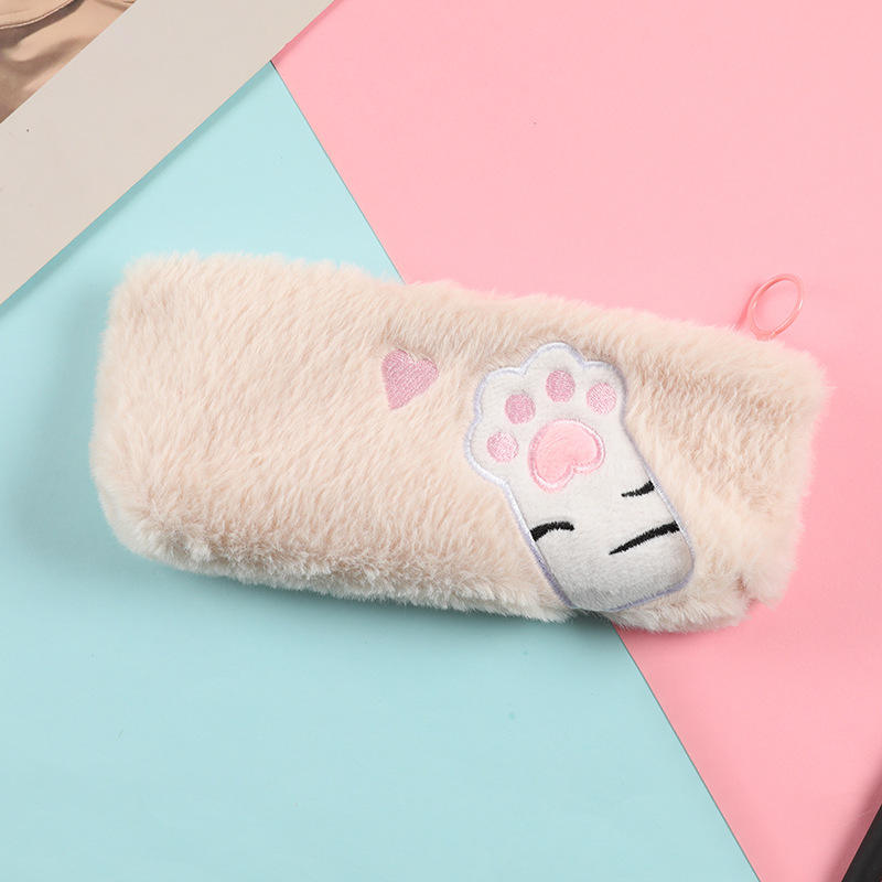 New Cute Simple Ins Cartoon Cat Claw Plush Pencil Bag Heart Stationery Box for Students Girls Children