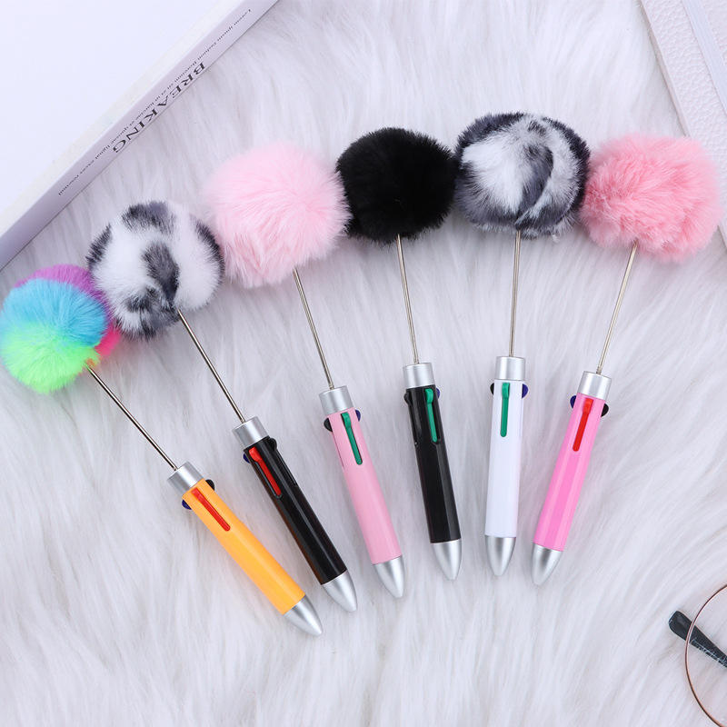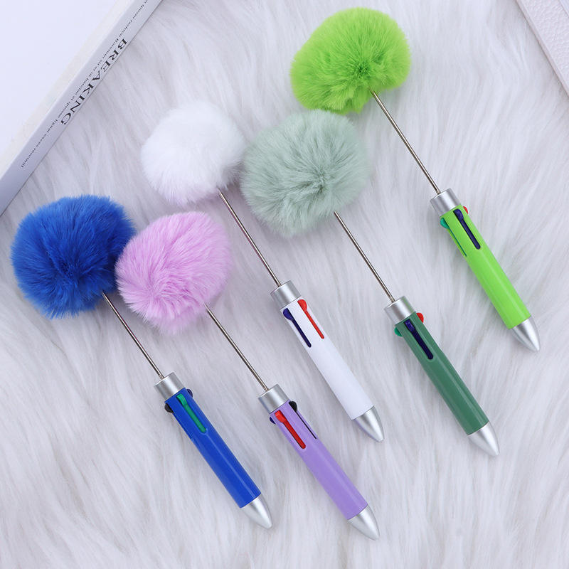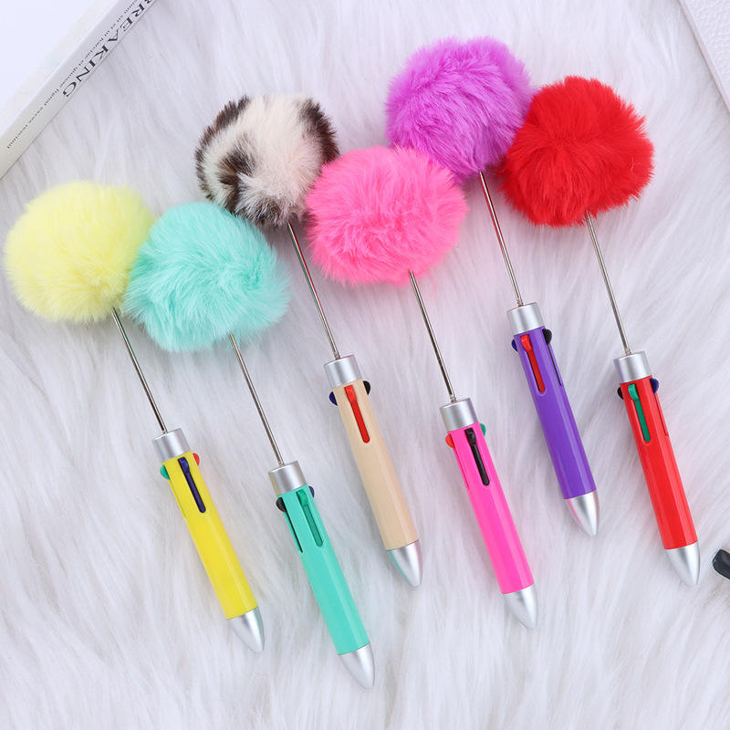 New DIY Multi-Color Bead Pompom Ballpoint 4-Color Refills Plush Creative Ball Pens for Gifts & Students