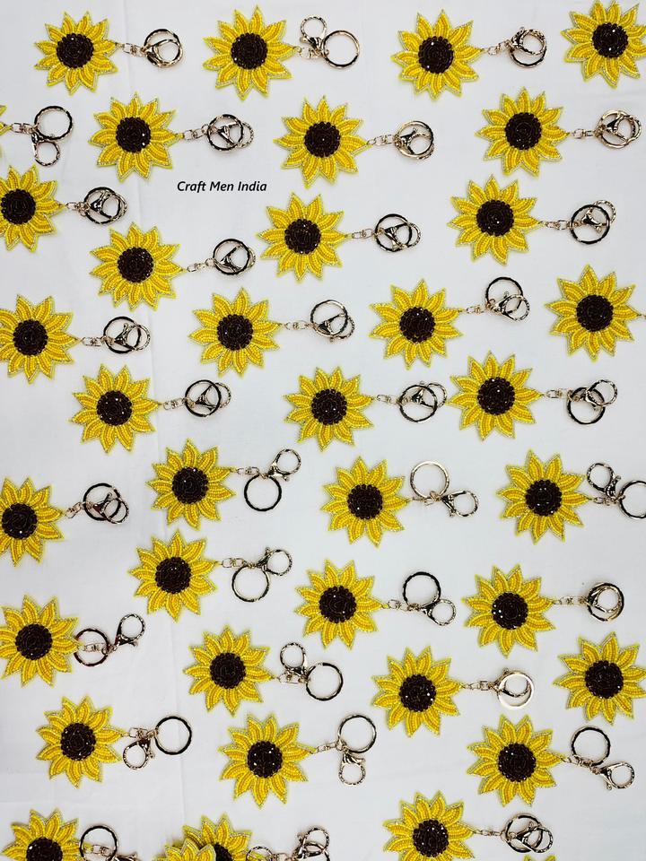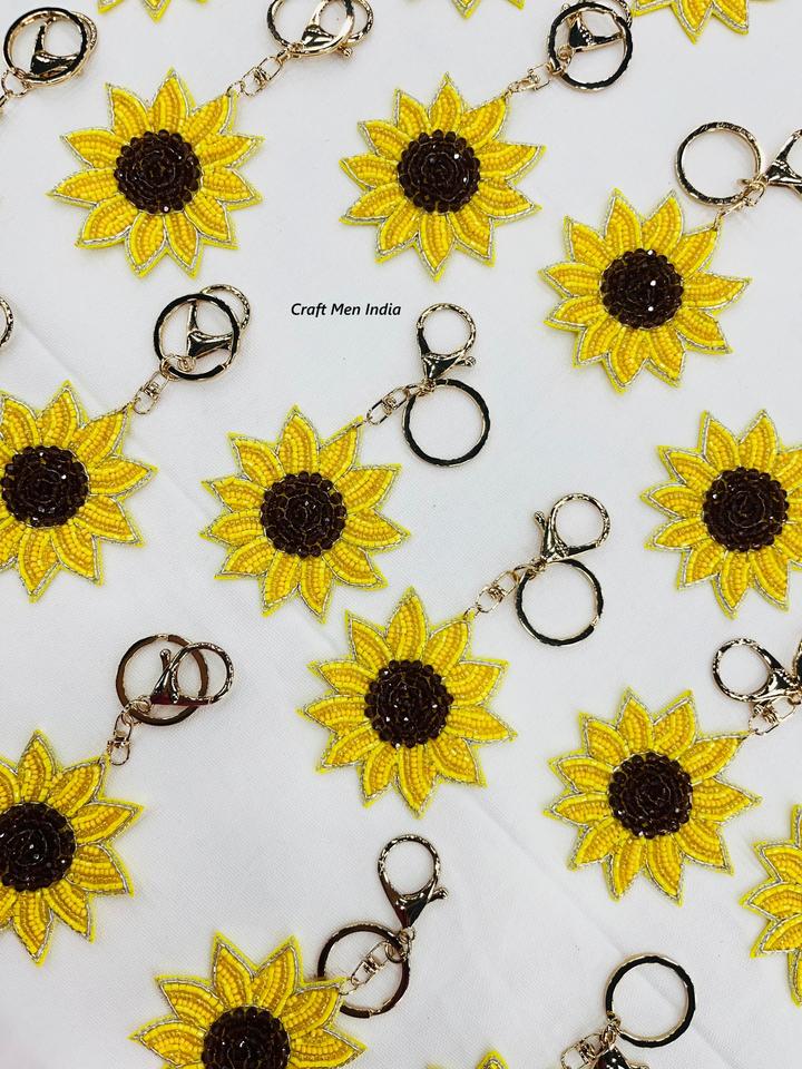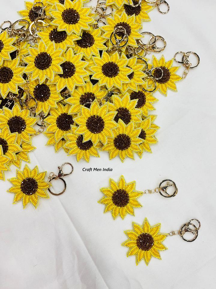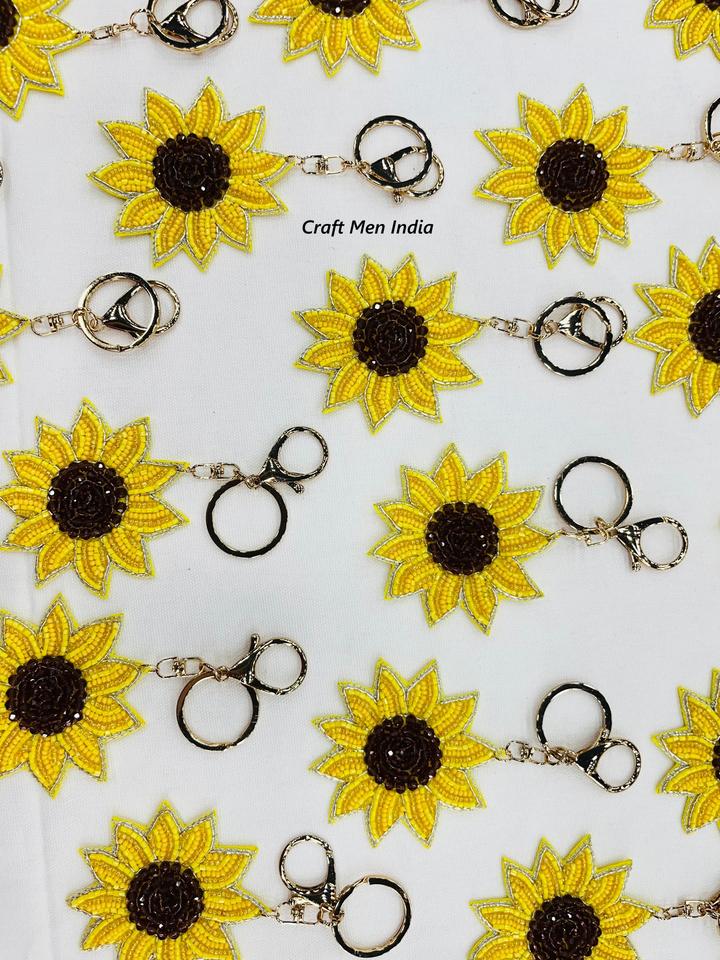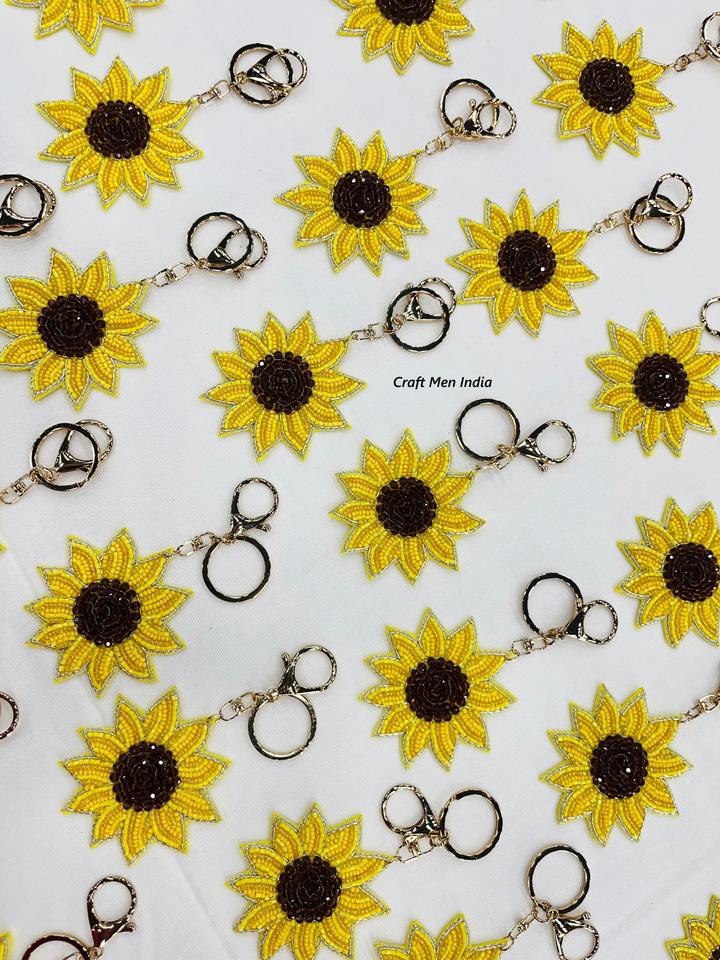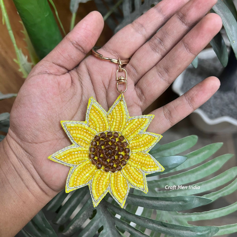 New Daisy Beaded Metal Keychain Bohemian Fashion Sunflower Rice Bead seed beaded keychain with metal hook