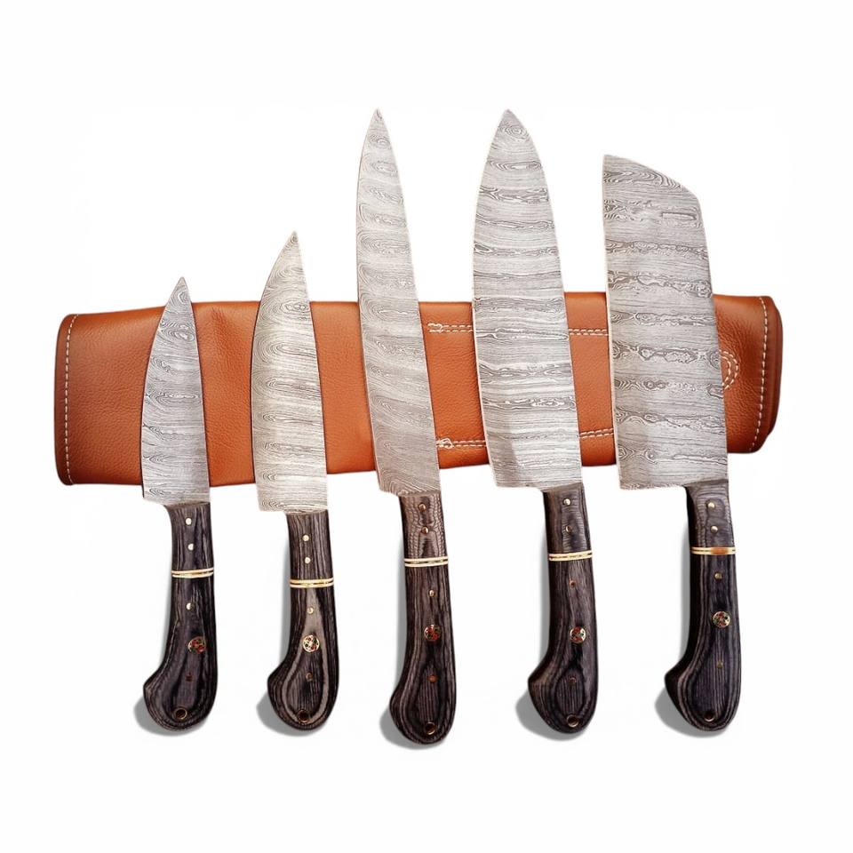 New Damascus Steel Knife Set 5 Pcs High Quality Olive Wood Handle Japanese Style Kitchen Knives OEM/ ODM Support Low Moqs