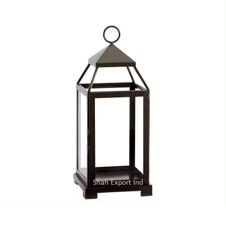 New Decorative Matt Black Finished Metal and Glass Candle Lanterns for Home and Garden Lighting Decoration Handmade