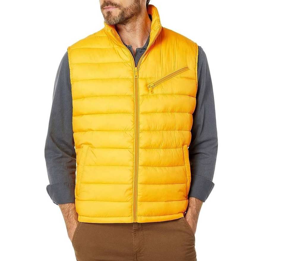 New Deign Sleeveless Puffer Men's Jackets Lightweight Fabric Solid Yellow Color Quilted Zipper Style Puffer Vest For Casual Use
