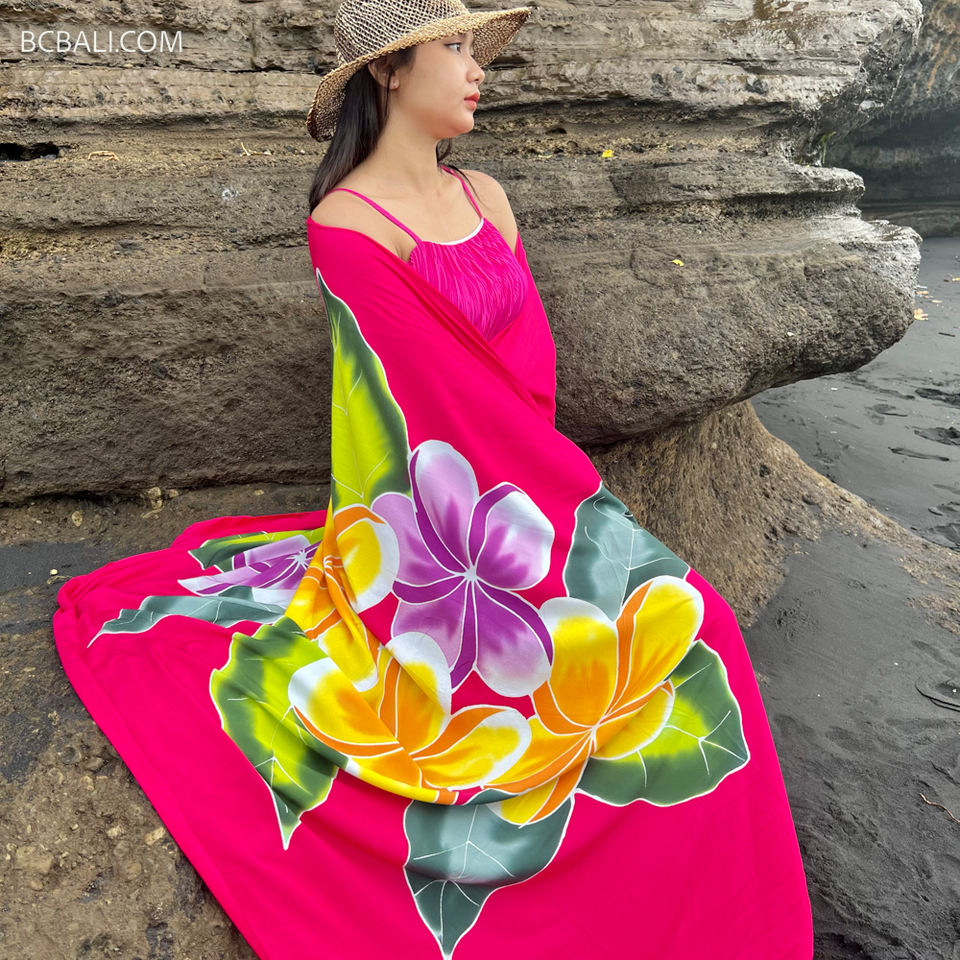 New Desain Sarongs Pareo Rayon Handpainted Beachwear Woman Fashion Balinese Design Flowers Wholesale Price Export Quality