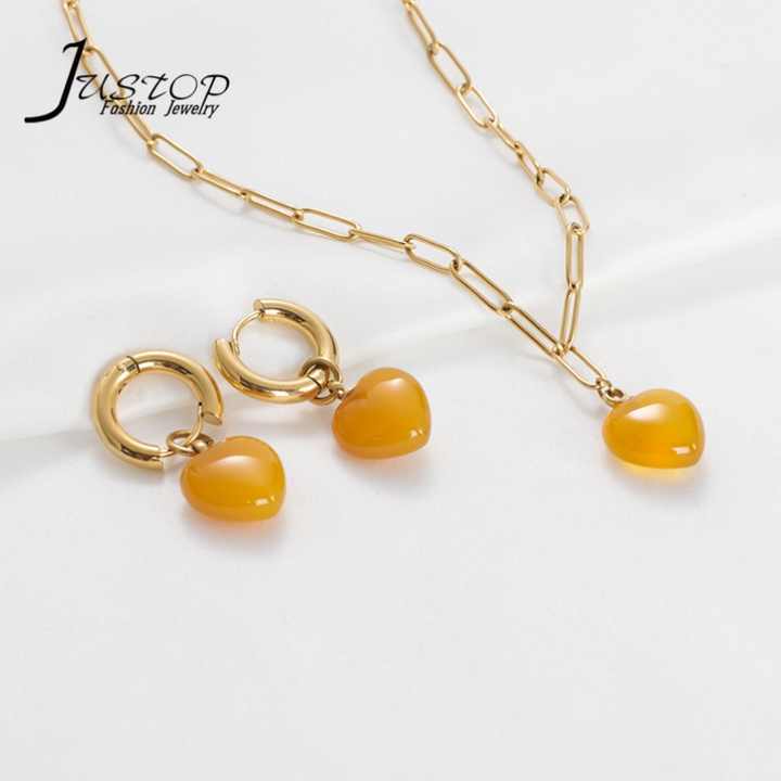 New Design 18K Gold Heart Rose Pendant Stainless Steel Necklace Earring Set for Wedding Party Engagement