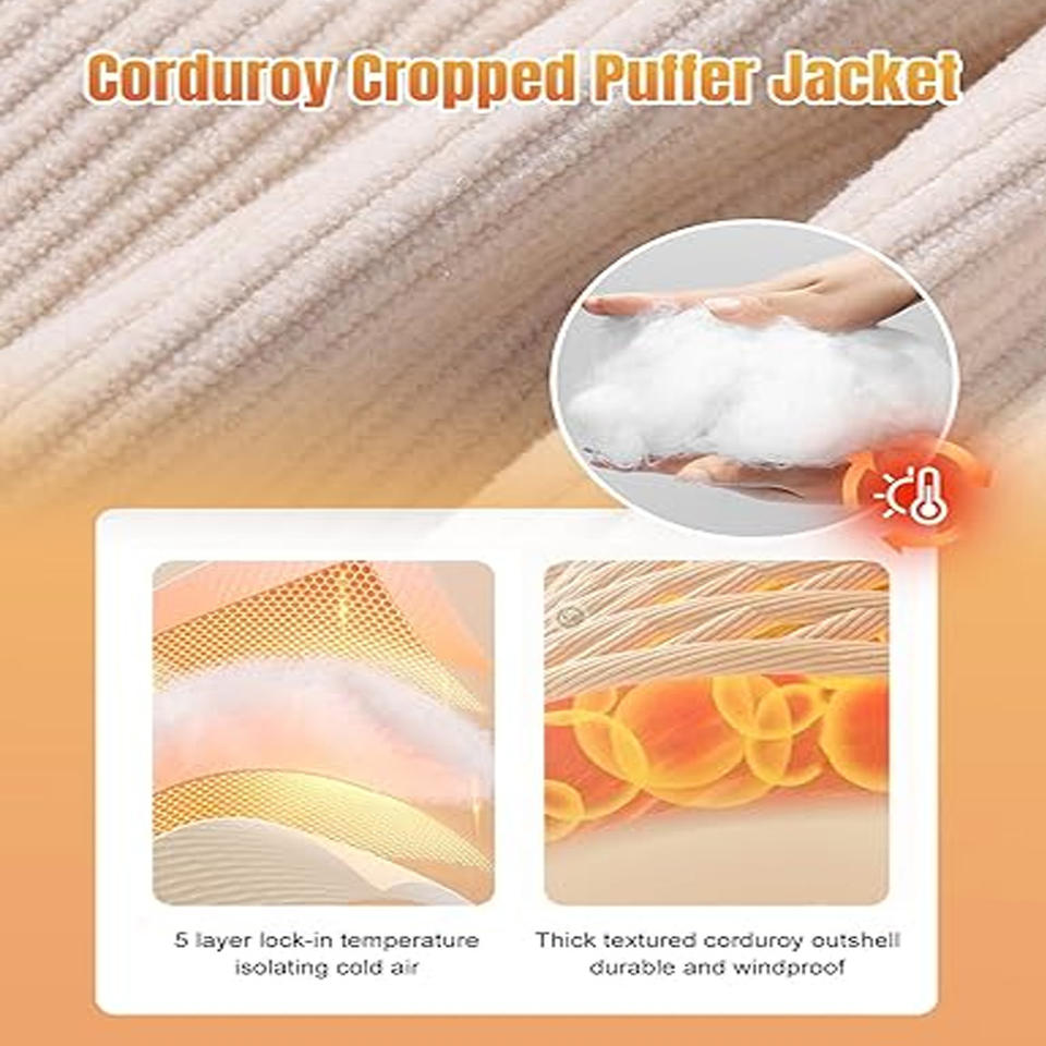 New Design 2025 Women Cropped Corduroy Puffer Jacket Winter Puffer Jackets Long Sleeve Zip Quilted Down Puffer Coat for Women
