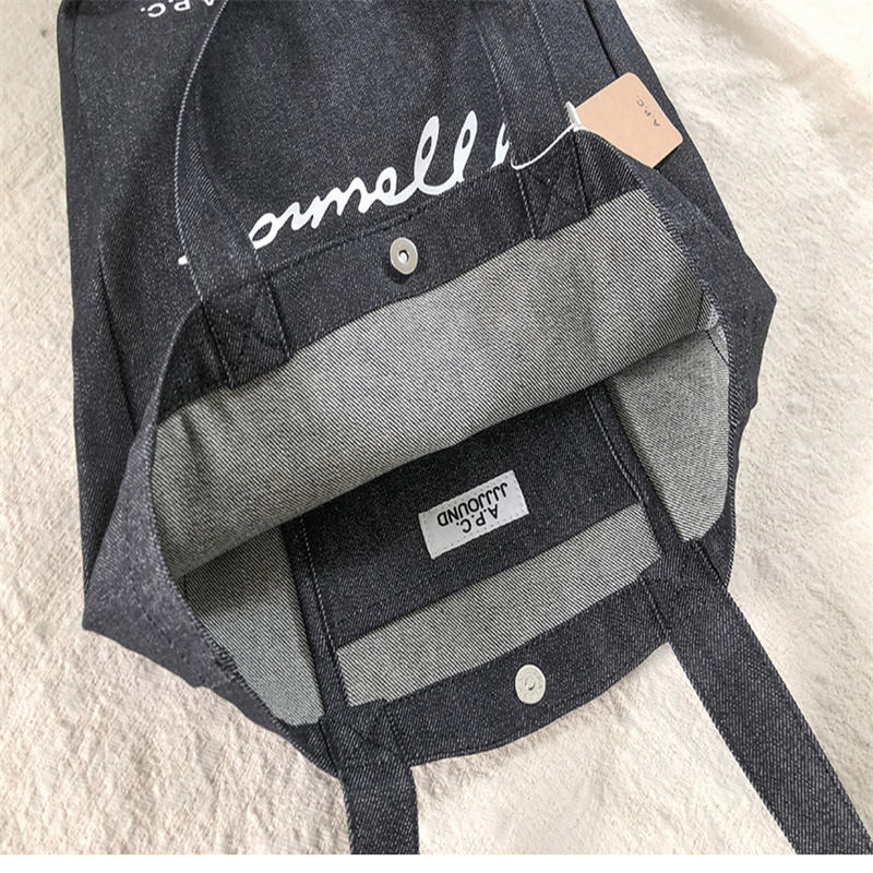 New Design 24 Inches Cotton Canvas Jeans Tote Bag Soft Cotton Shopping Tote Bag With Inside Pocket Magnetic Design Beach Bag