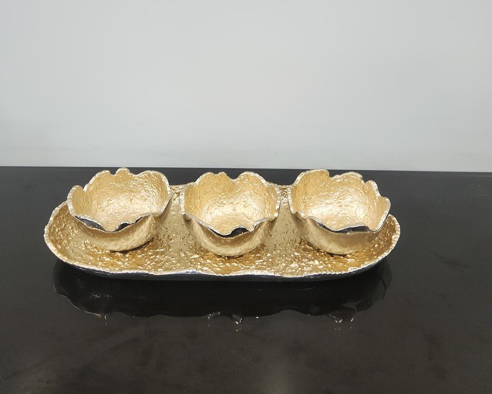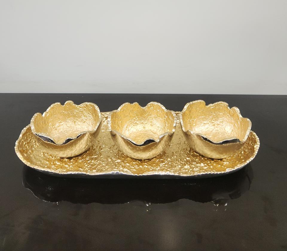 New Design 3-Piece Mini Tabletop Decor Set Metal Marble Tray with Long Salt and Pepper Server Dessert Bowl for Home Parties