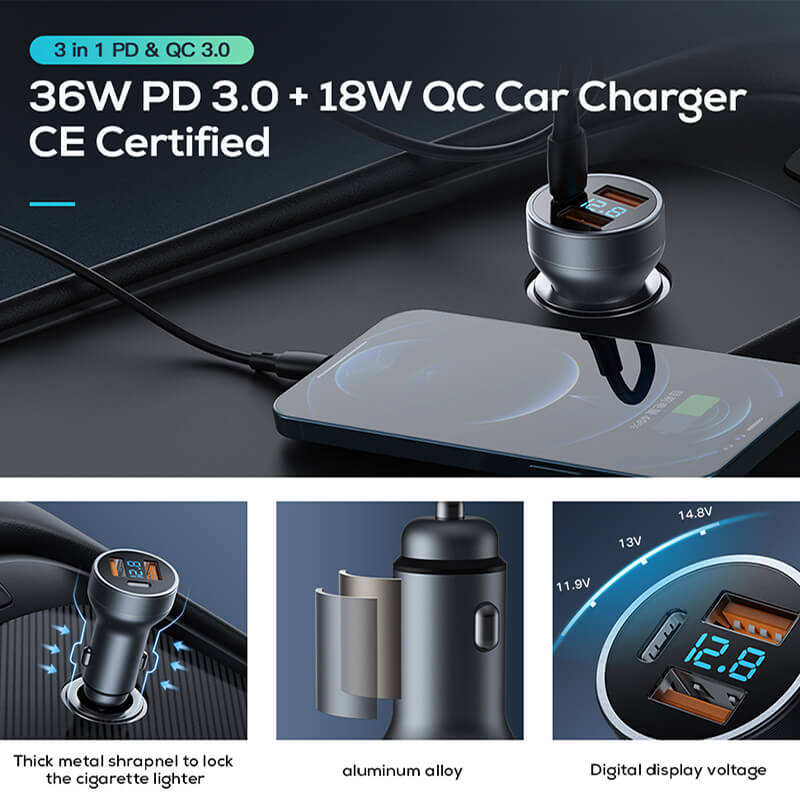 Product Name:3 port pd 36w QC18W usb car charger