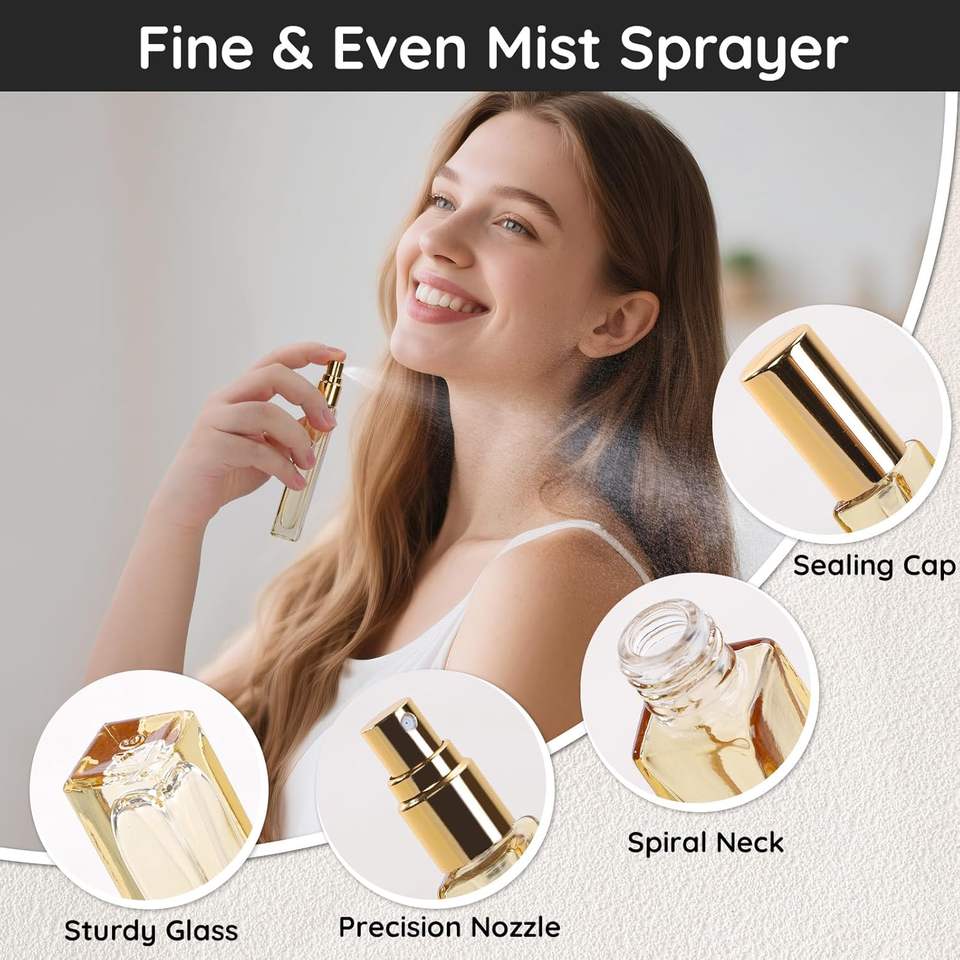 Gold Transparent Square Portable Refillable Perfume Glass Bottle
