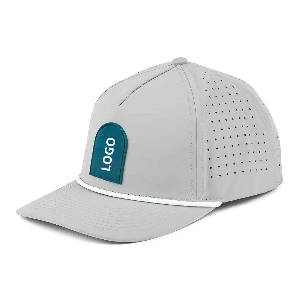 New Design 5-panel Hat Laser Perforated Snapback Golf Cap with Semi-curved Brim and Rubber Patch Logo Sports Hat Manufacturer