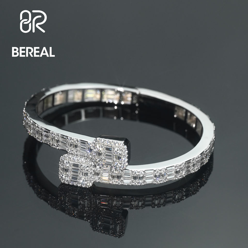 New Design 925 Silver Bangle Pass Diamond Test Baguette Cut Vvs Moissanite Diamond Fancy Women Bangle Jewelry