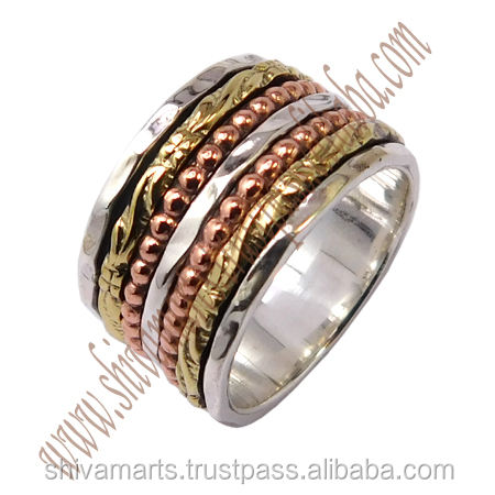 New Design 925 Sterling Silver Eternity Vermeil Ring All Sizes Two Tone Spinner Wide Band Rings Manufacturer