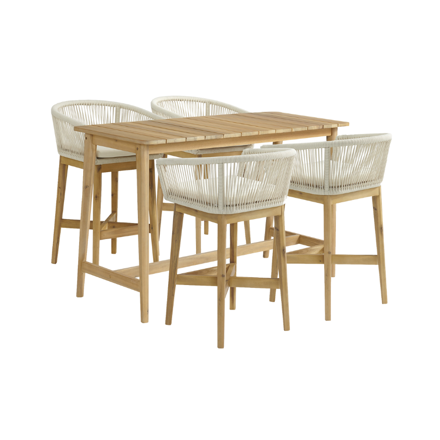 New Design Acacia Wood With Rope Synthetic Rectangle Bar Table Set With 4 Chairs from Vietnamese manufacturer