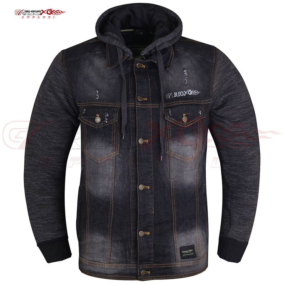 New Design Aramid Lined Jeans Denim Hoodie Motorcycle Protective Jacket Denim Jeans Rider Wear Armored Fashion Clothing for Men