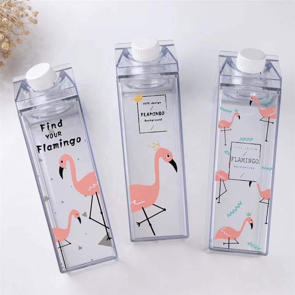 New Design BPA Free 500Ml 1000Ml Plastic Clear Transparent Acrylic Square Milk Box Carton Shaped Water Bottle With Cap