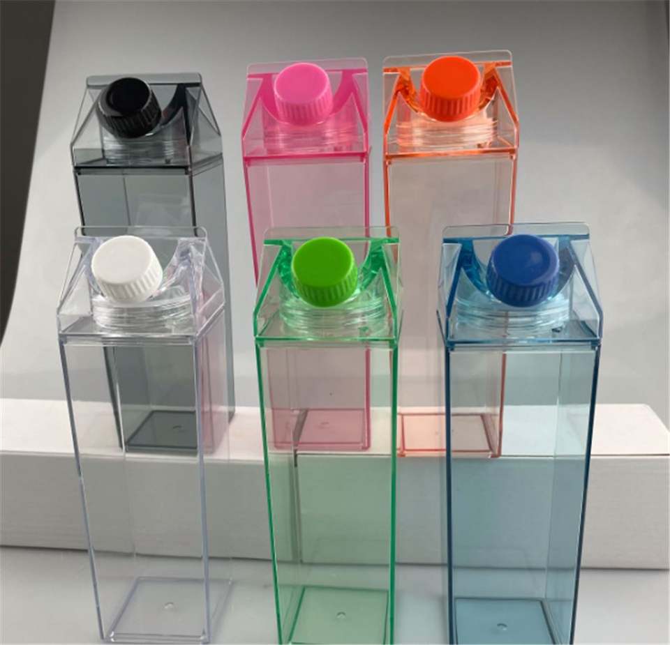 New Design BPA Free 500Ml 1000Ml Plastic Cups Clear Transparent Acrylic Square Milk Box Carton Shaped Water Bottle With Cap