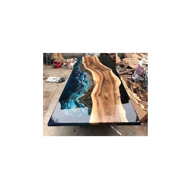 New Design Black Epoxy Resin River Handmade Wooden Table Top Customized Living Room Decorative Dining Table Top