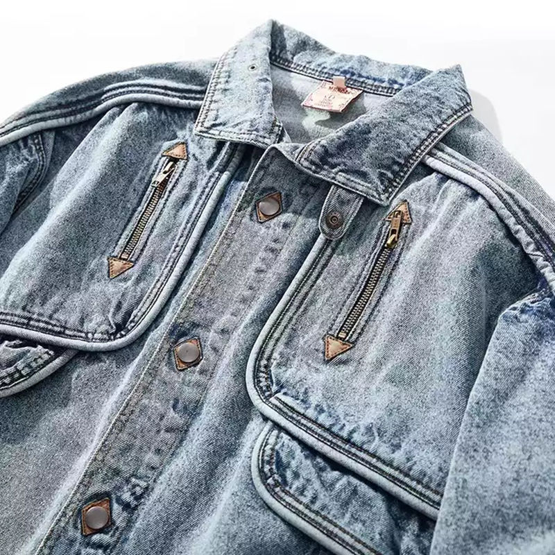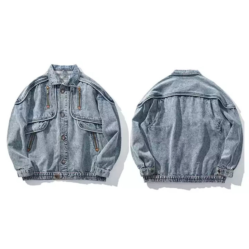 New Design Blue Men's Denim Jacket Stand Collar Zipper Closure Hooded Oversize Fit Autumn/Winter Vintage Style Branded Outwear