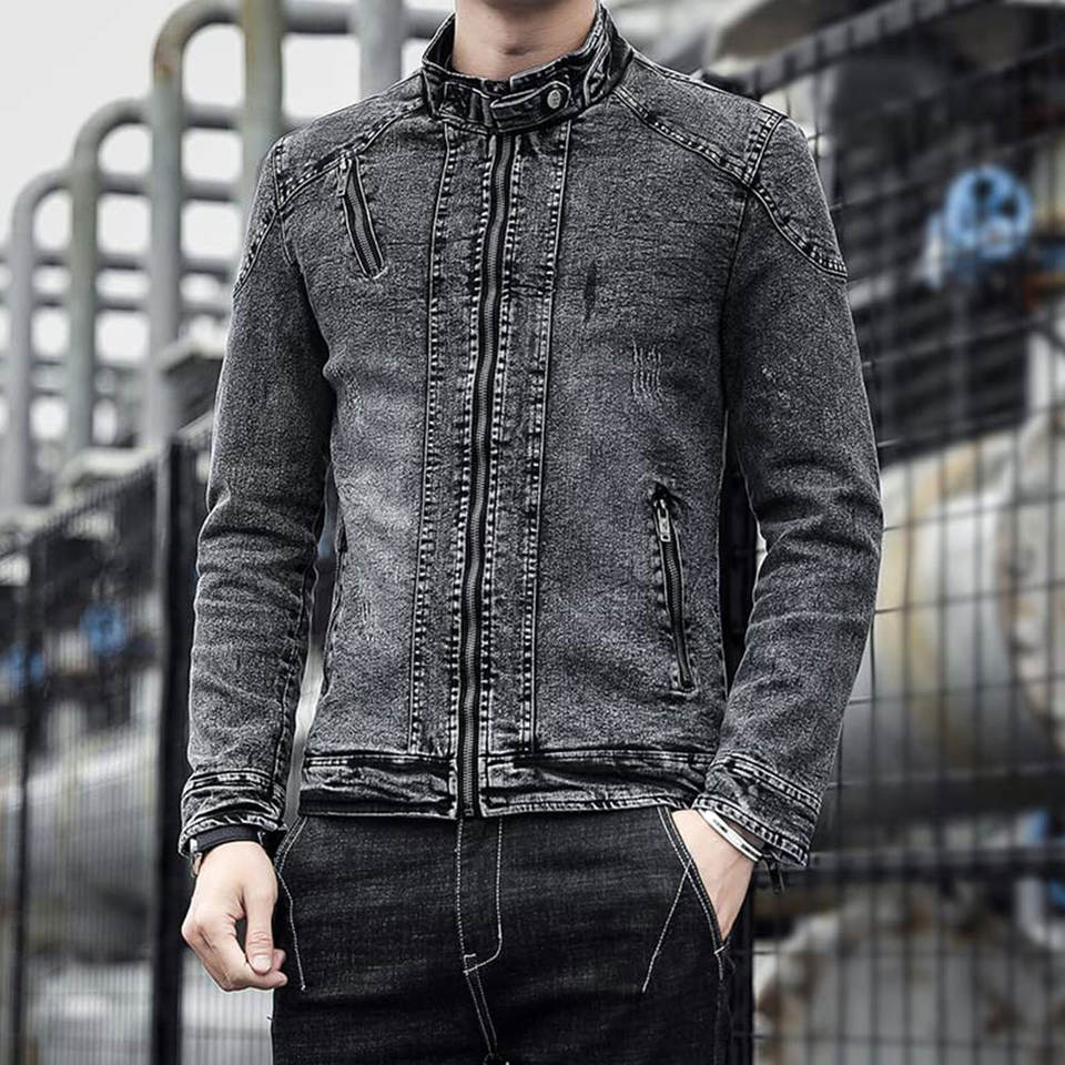 New Design Blue Men's Denim Jacket Stand Collar Hooded Breathable Autumn Cowboy Winter Oversize Branded Size L Outwear
