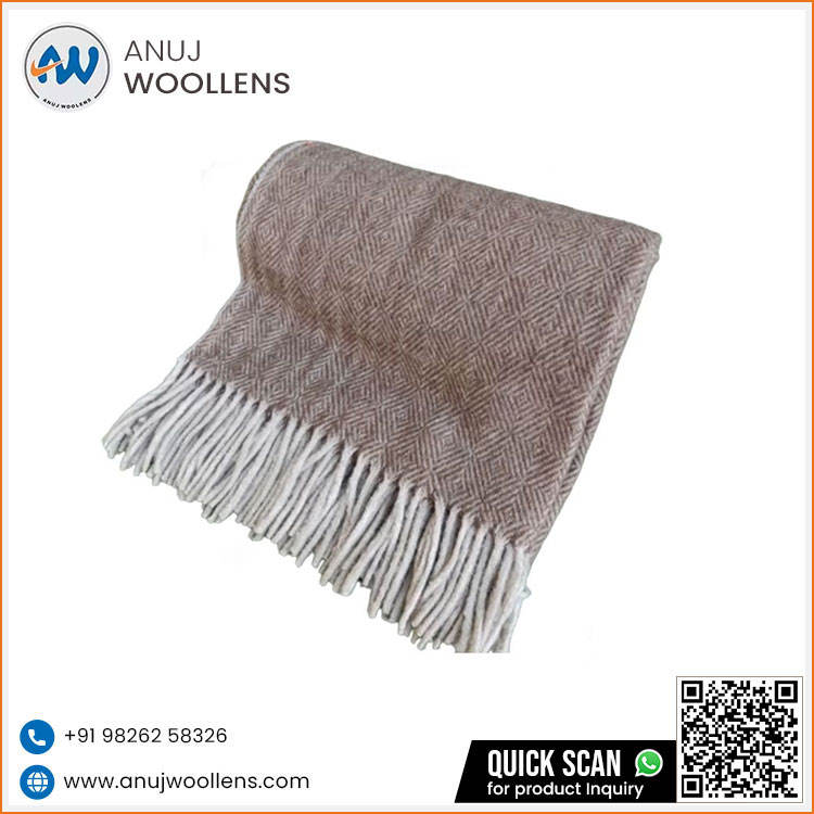 New Design Brown Diamond Herringbone Tartan Wool Blankets Best Price Hand Woven by Indian Manufacturer
