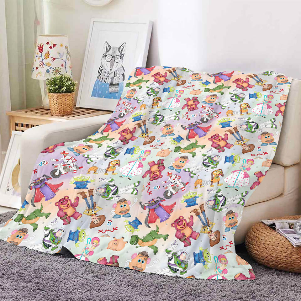 New Design Cartoon Toy Friends Print Plush Blanket Customized Fleece Flannel Bedding Quilt Throw Kids Baby Blankets