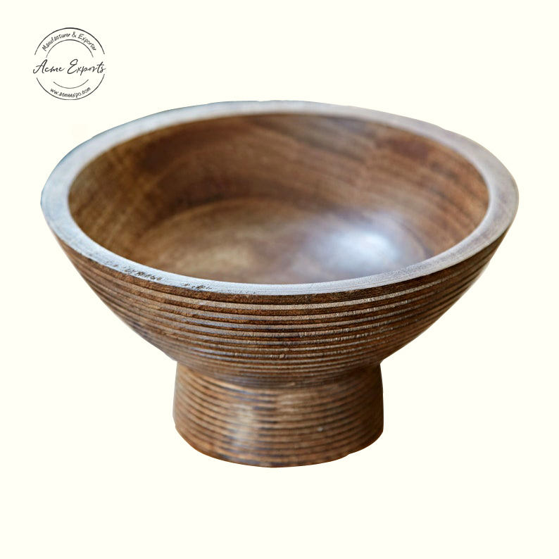 New Design Eco-Friendly Carved Mango Wood Footed Bowl Rustic Natural Finish for Serving Nuts and Snacks at Parties