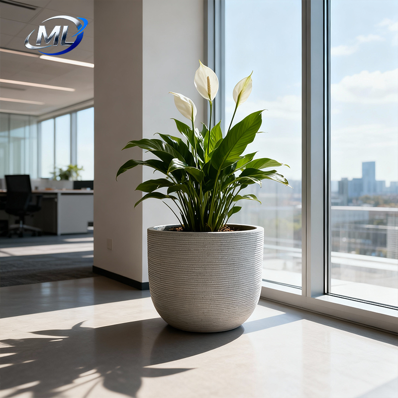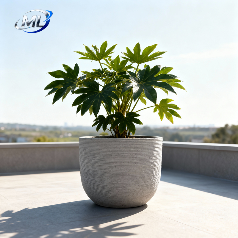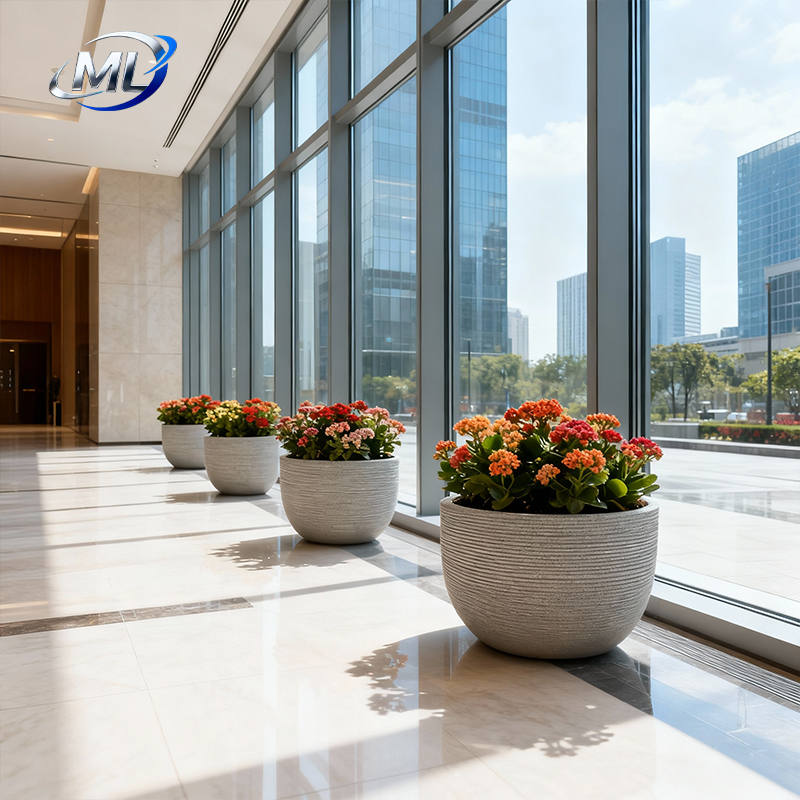 New Design Cement Gray Textured Fiberglass Flower Pots for Planting Large Quantities Giant for Shopping Malls Hotel Lobbies
