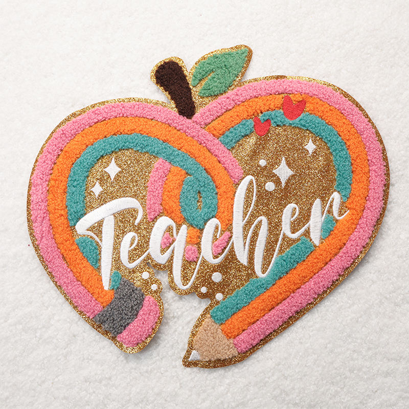New Design Chenille Teacher Patch Book Embroidery Iron Patches Custom With Glitter for Clothes Decoration