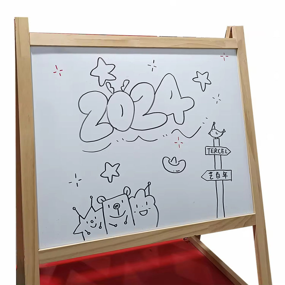 New Design Children's Wooden Painting Easel with Holds Canvas Cartoon Style Educational Art Learning Toy for Kids