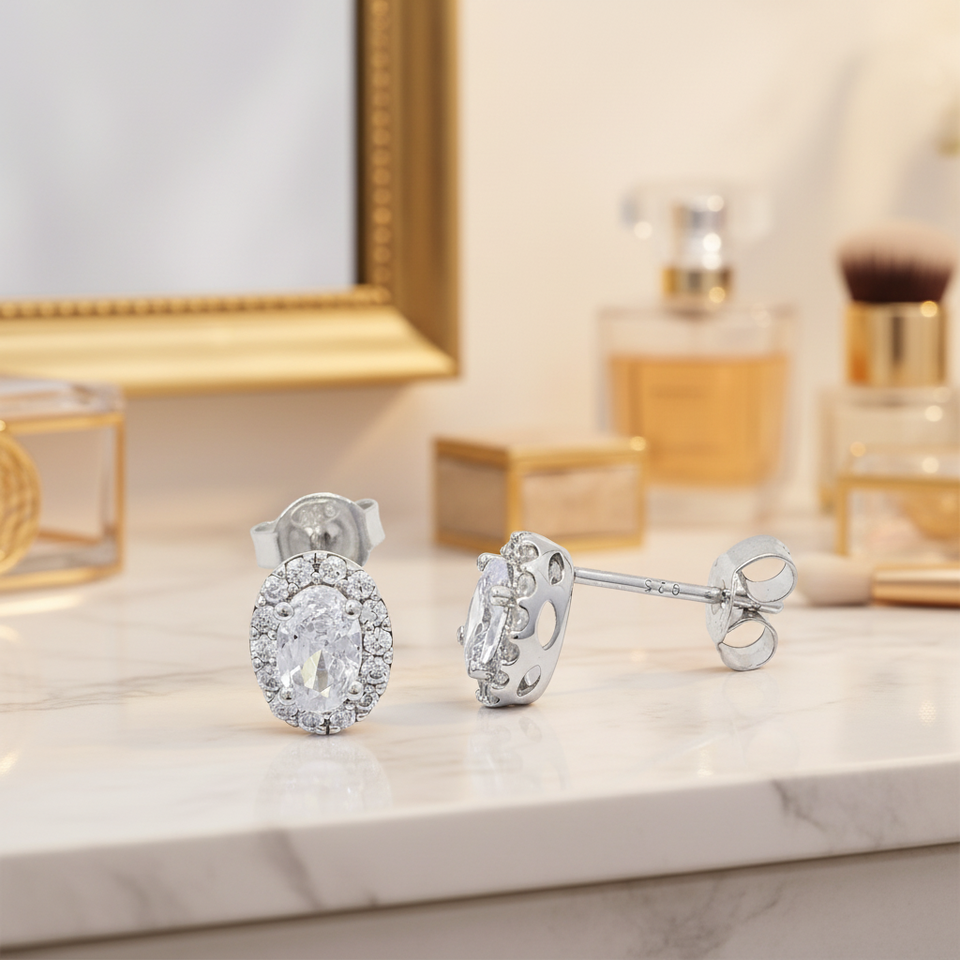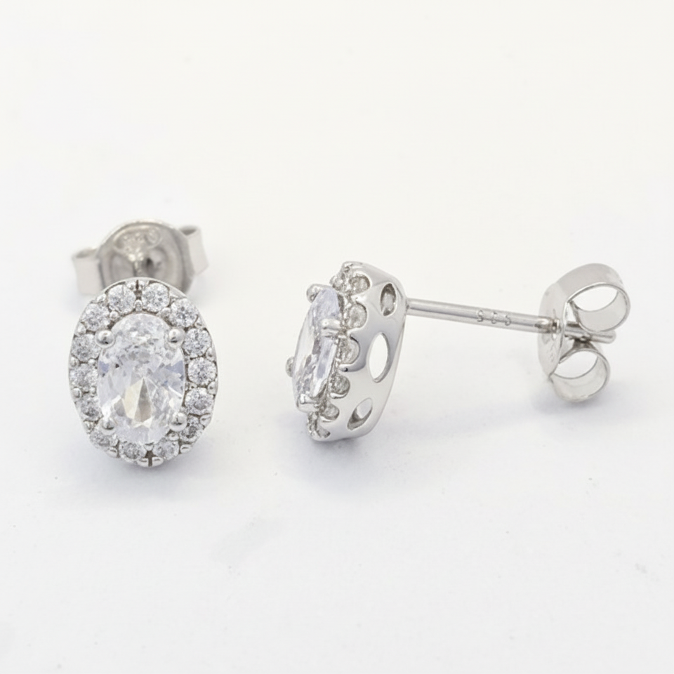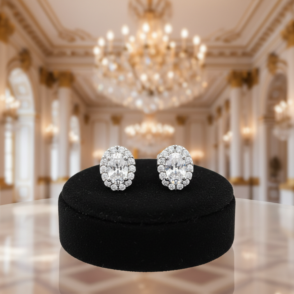 New Design Classic Oval Shape Rhodium Plated Silver Moissanite Stud 4 Layers Plated Gold Quality for Women's Anniversary