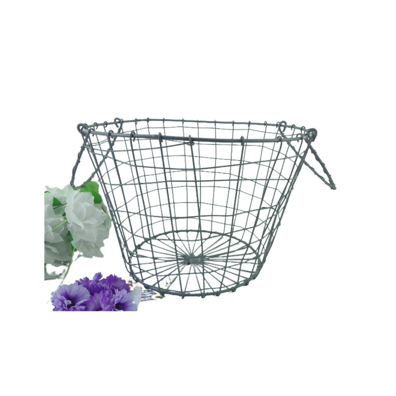 New Design Clothes Basket Metal Round Wire Basket With Handle Grey Plating Iron Laundry Basket for Cloths