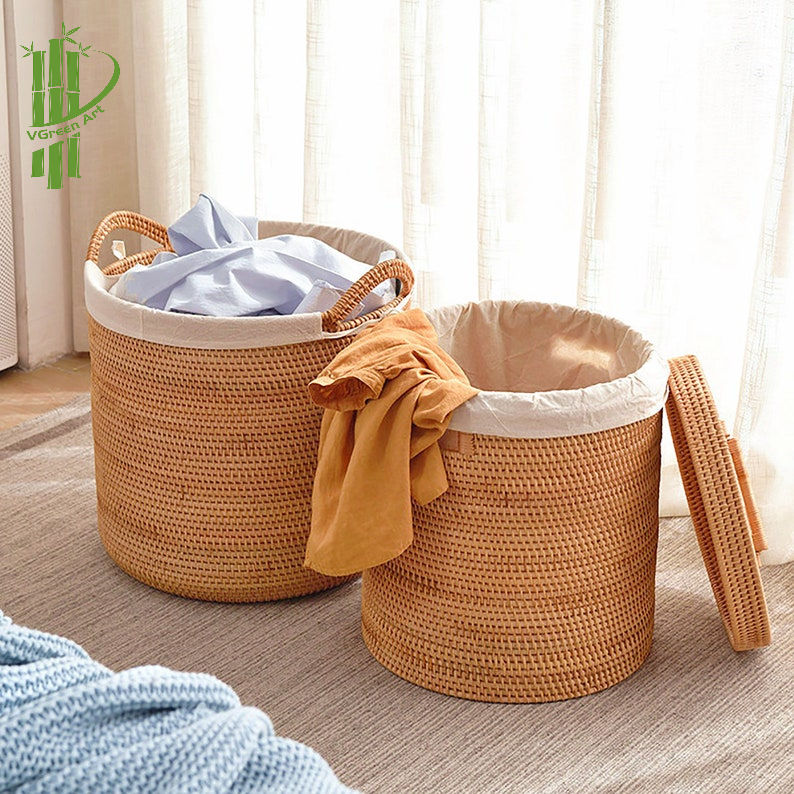 New Design Clothing Round Folding Rattan Storage Basket Dirty Clothes Laundry Basket From Vietnam