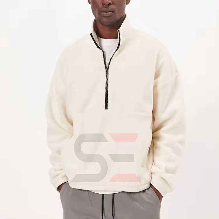 New Design Custom Hoodies 100% Cotton Oversized 380g Crewneck Sweatshirt Dropped Shoulder Men'S HALF QUARTER ZIP Hoodies