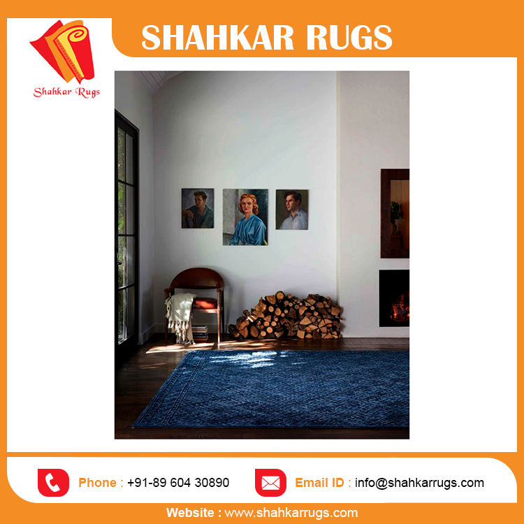 Custom Size Luxury Navy Wool Rug Hand Tufted Plush Carpet for Kitchen Large Size Living Room Exclusive Design at Wholesale Price