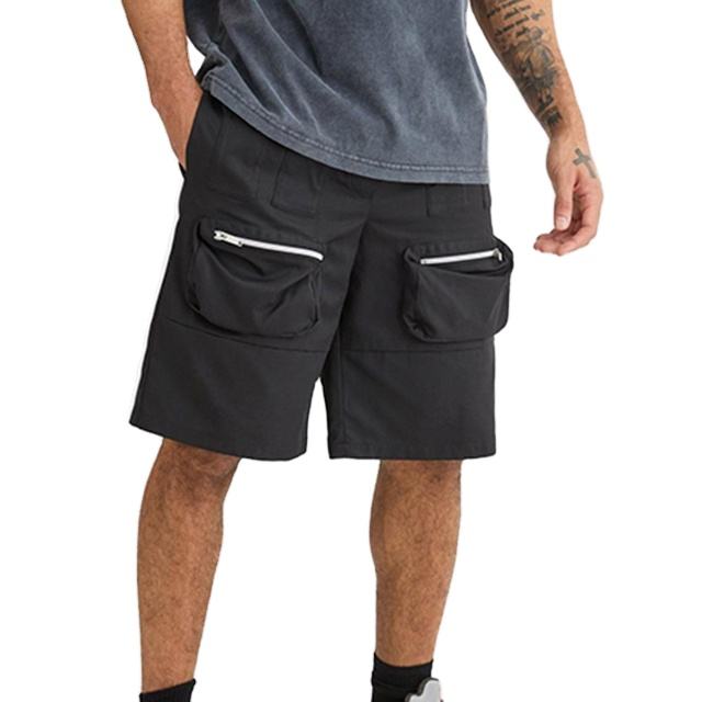 New Design Custom Two Zipper Pockets Front Men's Fashion Wear 100% Cotton Solid Customizable Color Streetwear Short Elastic