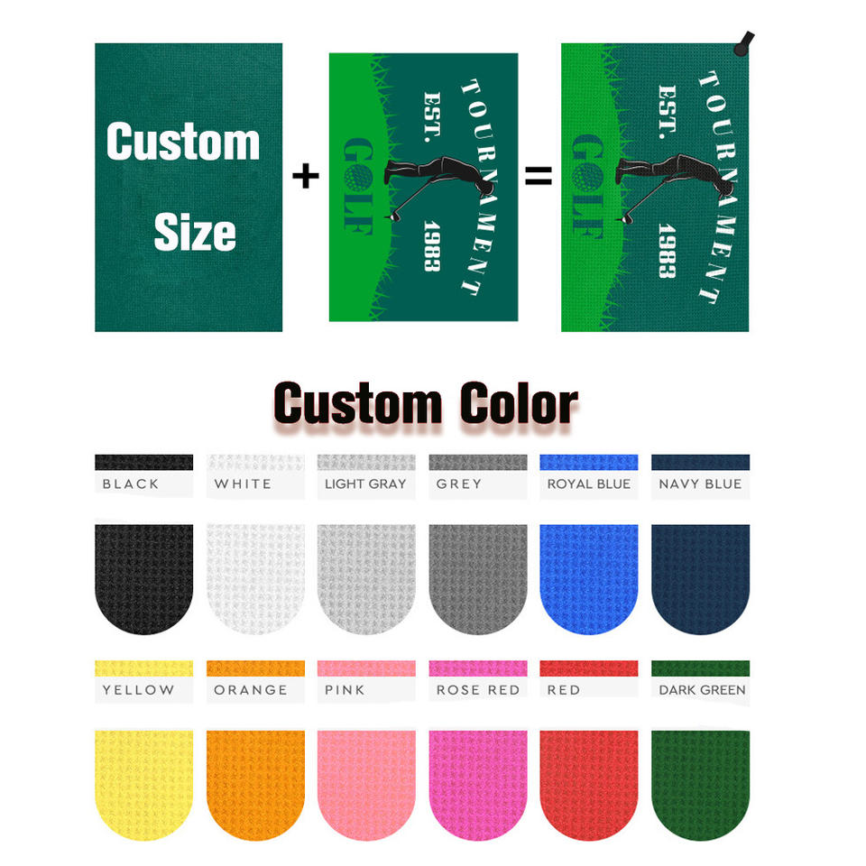 New Design Custom Logo Printed Quick-Dry Light Weight Microfiber Magnetic Rectangle Waffle Golf Towel Strong Hold Metal Objects