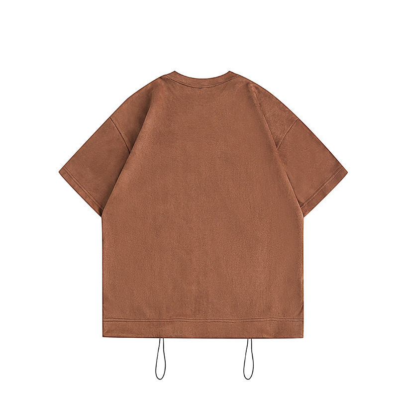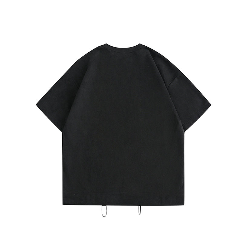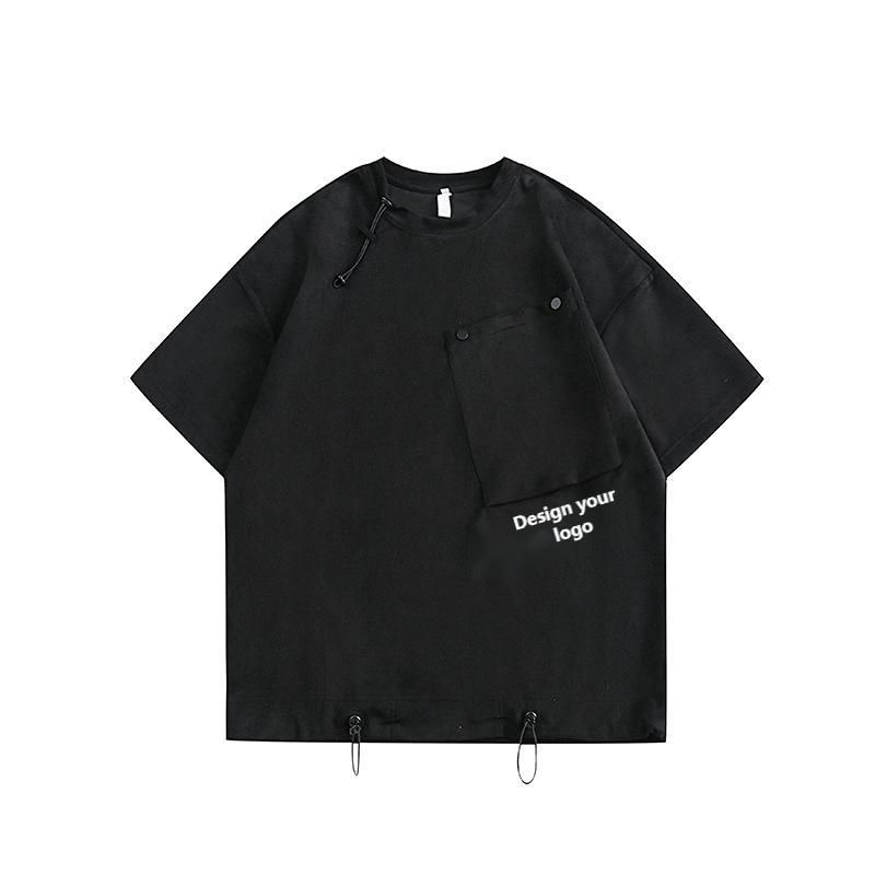 New Design Customized Men's Solid Color Slant Pocket Oversized Short Sleeve T-Shirt Adjustable Collar Draped Half Sleeve Tshirt