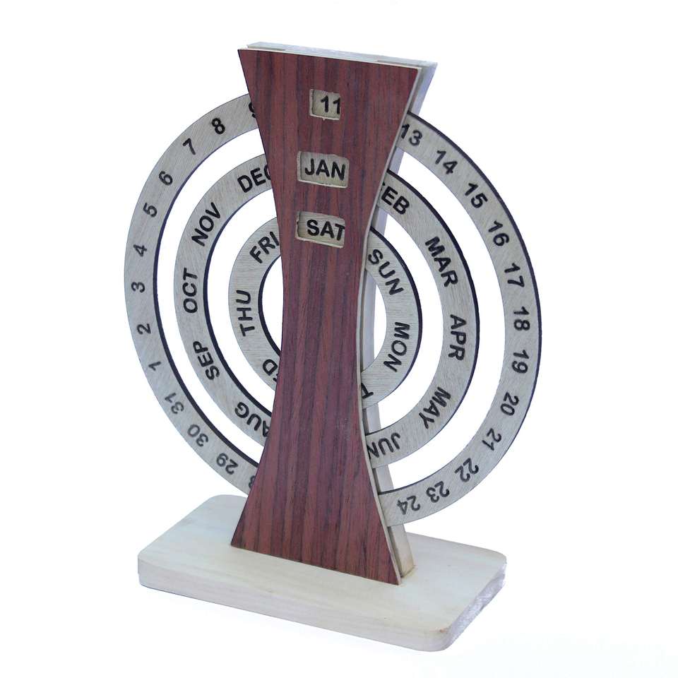 New Design Easy Desktop Wood Ferris Wheel Moon Shovel Calendar Stand for Home Decoration Rotating Desk Calendar Handicraft